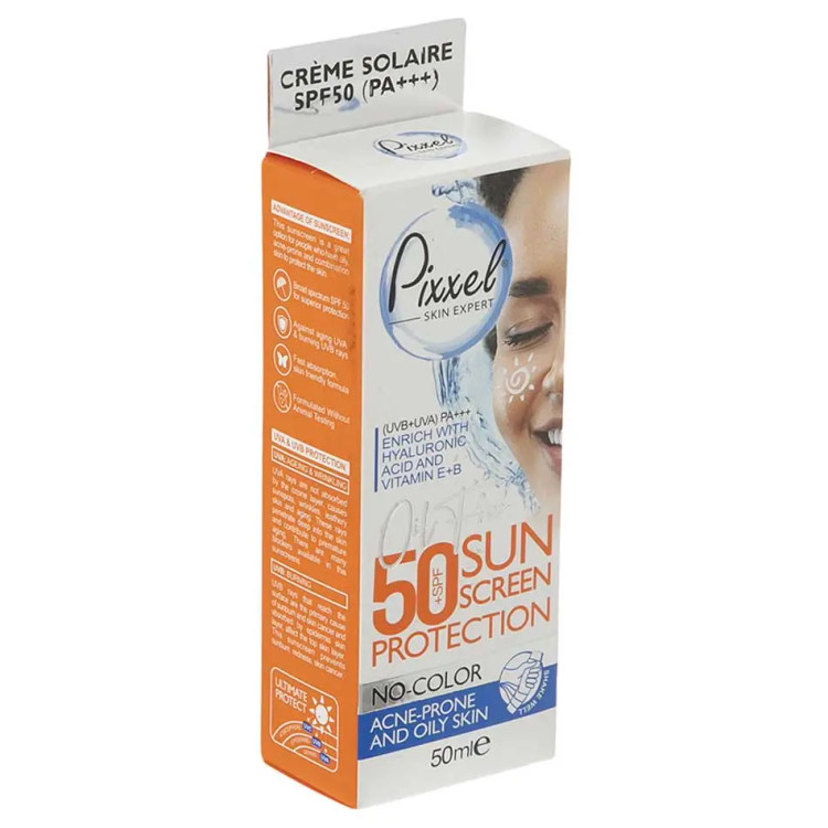 کرم ضد آفتاب بی رنگ پیکسل SPF 50 مناسب پوست چرب و جوش دار ،پوست را در برابر هر دو اشعه خطرناک خورشید محافظت میکند و لایه محافظتی بینقصی برای آن ایجاد مینماید.