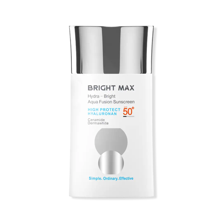 فلوئید ضد آفتاب آکوا فیوژن هیدرا-برایت برایت مکس با دارا بودن ترکیبات آبرسان و ترمیم کننده قوی شامل هیالورونیک اسید و سرامید در فرمولاسیون خود، ضمن محافظت از پوست در مواجهه با اشعه مضر خورشید و رادیکال های آزاد، رطوبت سطحی پوست را حفظ میکند و منجر به آب رسانی عمقی لایه های پوست میگردد. به صورتی که چین و چروک های ناشی از خشکی پوست و اشعه مضر خورشید کاهش مییابند.