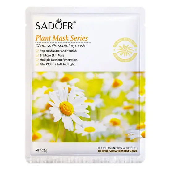 ماسک نقابی از برند سادور SADOER، حاوی عصاره ی گل بابونه می باشد.همانطور که میدانید، گیاه بابونه برای پوست خواص زیادی دارد.این ماسک با فرمولاسیون غنی شده از بابونه، موجب تسکین و آرامش پوست شده و در بهبود جوش و جای جوش نیز موثر است.عصاره ی این گیاه ی شگفت انگیز، موجب پاکسازی، آبرسانی ، تغذیه کنندگی و جوانسازی پوست می شود.ماسک ورقه ای بابونه سادور آثار استرس و خستگی پوست را در کوتاهترین زمان از بین میبرد و پوست را شفاف و شاداب می سازد.