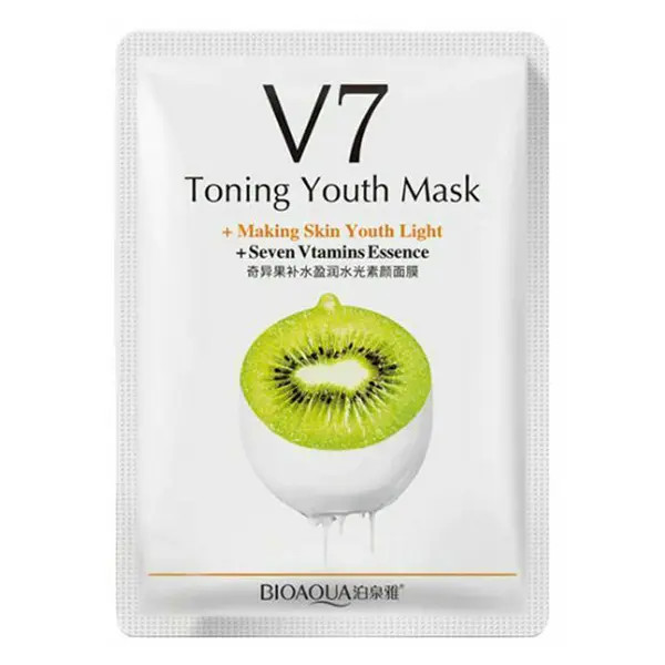 ماسک نقابی هفت ویتامین با عصاره ی کیوی، سرشار از ویتامین C می باشد که موجب روشن و شفاف شدن پوست و آبرسانی عمیق پوست می شود.این ماسک جوان کننده پوست است و از ایجاد چین و چروک جلوگیری می کند. میوه کیوی حاوی مقادیر غنی از آنتی اکسیدان های قوی است که می توانند به کاهش رادیکال های آزاد مخرب که باعث ایجاد چین و چروک روی پوست می شوند کمک کند.