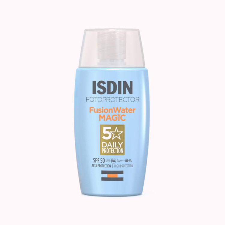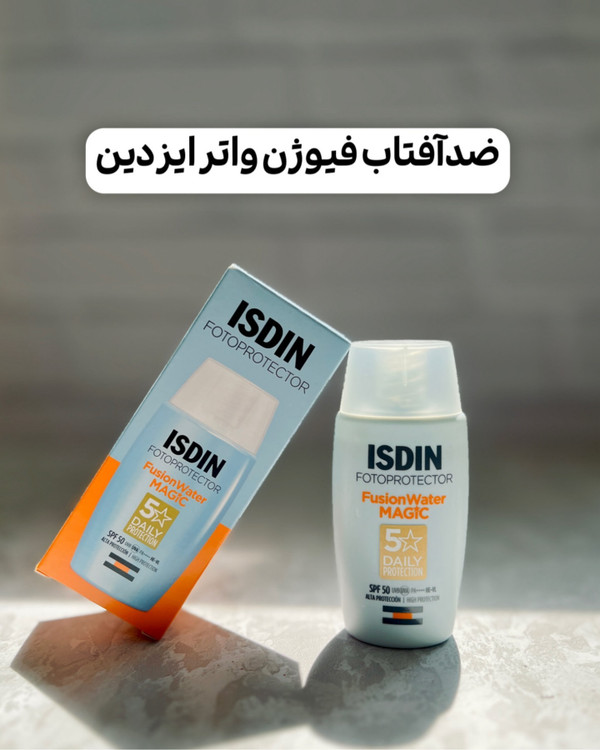ضدآفتاب مجیک فیوژن واتر ایزدین ISDIN Fusion Water MAGIC SPF 50 ضد آفتاب فیوژن واتر مجیک ایزدین با SPF50 یک کرم ضد آفتاب فاقد چربی، غیرکومدوژنیک، بی رنگ با تکسچر فوق سبک بر پایه آب است که محافظت حداکثری روزانه را از پوست صورت در مقابل نور UVA و UVB فراهم میکند. این کرم زود جذب، و حس چربی بر جا نمیگذارد و حتی به کنترل چربی پوست شما نیز کمک میکند. فیوژن واتر مجیک افزایش 68 درصدی آبرسانی به پوست را در تنها 30 دقیقه پس از استفاده نشان داده است.مجیک ایزدین با محافظت یکنواخت دارای پوشش طبیعی یکدست و بدون رد سفیدی است. این کرم بدون ایجاد سوزش برای دورچشم در انواع پوست حتی حساس قابل تحمل و قابل استفاده است.