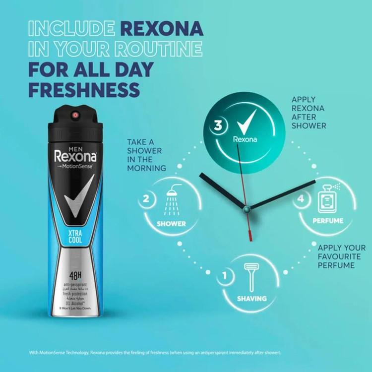 اسپری ضد تعریق مردانه رکسونا مدل Xtra Cool دارای ماندگاری 48 ساعته میباشد و یک انتخاب بسیار عالی برای آقایان میباشد. در اثر فعالیت زیاد، تعرق مداوم به وجود آمده که بوی نا مطبوعی دارد. اسپری رکسونا از تعریق و بوی بد جلوگیری نموده و رایحه ای خوش را به بدن میبخشد. با توجه به اینکه این محصول غیر پودری میباشد از بروز بک و سفیدک بر روی لباس ممانعت مینماید.
