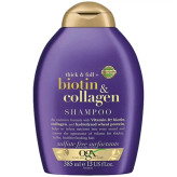 شامپو بیوتین و کلاژن او جی ایکس Ogx دارای ویتامین B7 (بیوتین) به همراه کلاژن و پروتئین گندم هیدرولیز شده است و با رساندن مواد مغذی به مو باعث ضخیم و پرحجمتر شدن همچنین افزایش سلامتی مو میشود. بیوتین موجود در این شامپو او جی ایکس استحکام مو را افزایش میدهد و کلاژن نیز با تغذیه ساختاری موجب افزایش حجم مو میشود و در نتیجه موهایی سالم و درخشان به ارمغان میآورد.